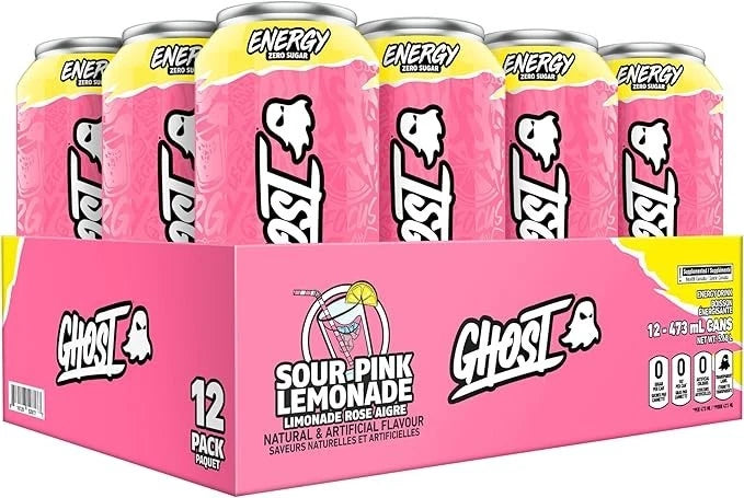 12 x GHOST SOUR PINK LEMONADE - Lifestyle SugarFree Energy Drinks